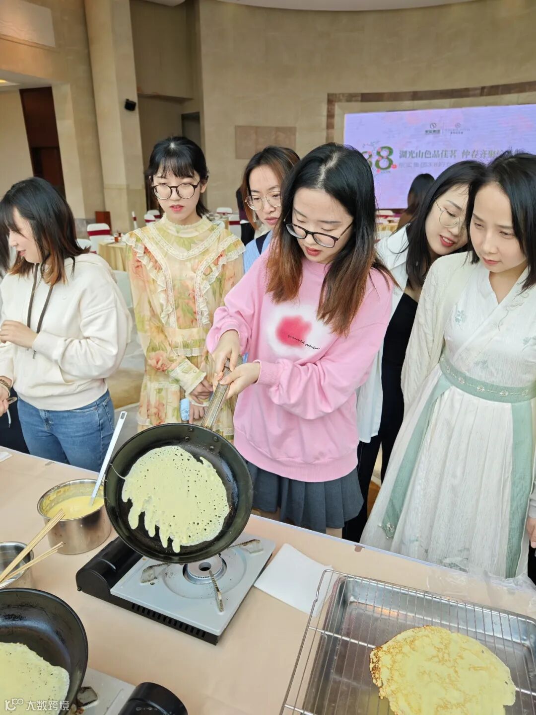 香醇的甜蜜气味,漫溢在空气中。活动现场,东莞迎宾馆的点心师傅们为大家详细讲解榴莲班戟、蛋挞等甜品以及饮品的制作流程和技巧,并现场进行演示、指导。