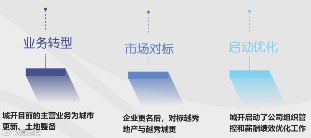 自2020年6月起,城开公司业务从片区土地统筹转型为城市更新与土地整备。业务转型调整后,公司管理体制机制不健全、存在较多短板,主要体现在三个方面:组织管控与业务不匹配、薪酬体系与市场不匹配、绩效考核体系缺失。