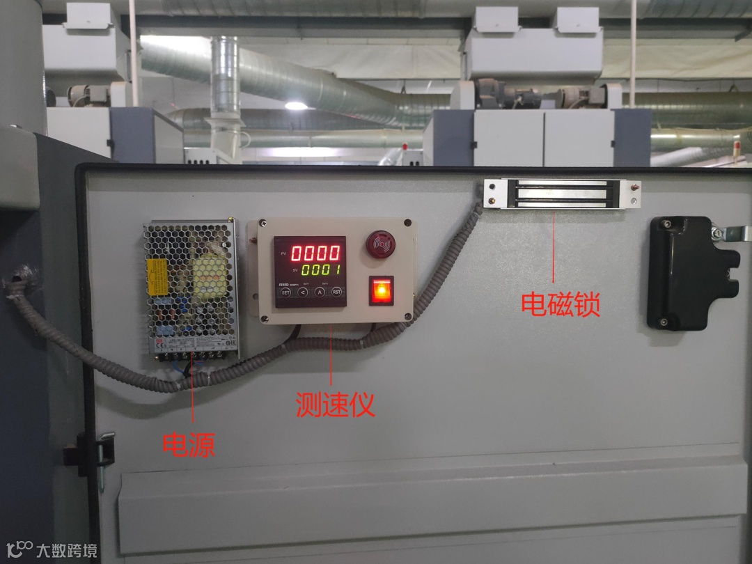 JWF1115精开棉是组成清梳联系统设备之一,该机由上棉箱部件、给棉部件、打手部件、尘棒调节部件、机架等部件组成。其梳针打手在一定转速下通过离心力和尘棒的综合作用将尘杂分离出来。设备在高速转动或者打手未停稳的时候,操作工打开设备防护门时梳针打手会将不慎伸入的手绞伤,给操作工造成人身伤害。