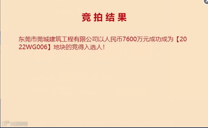 12月19日14:30,位于东莞市寮步镇上屯村地块(2022WG006)最终竞拍结果出炉,东实集团全资子公司东莞市莞城建筑工程有限公司(以下简称“莞建公司”)以底价7600万元成功竞得该地块。