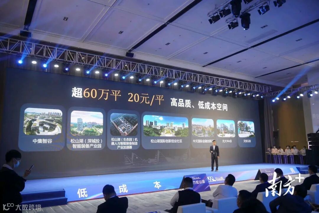 本次大会现场,松山湖正式对外推出超60万平方米、20元/每平方米以下的高品质、低成本空间,重点招引数字经济、人工智能、软件、工业设计等重点领域企业。
