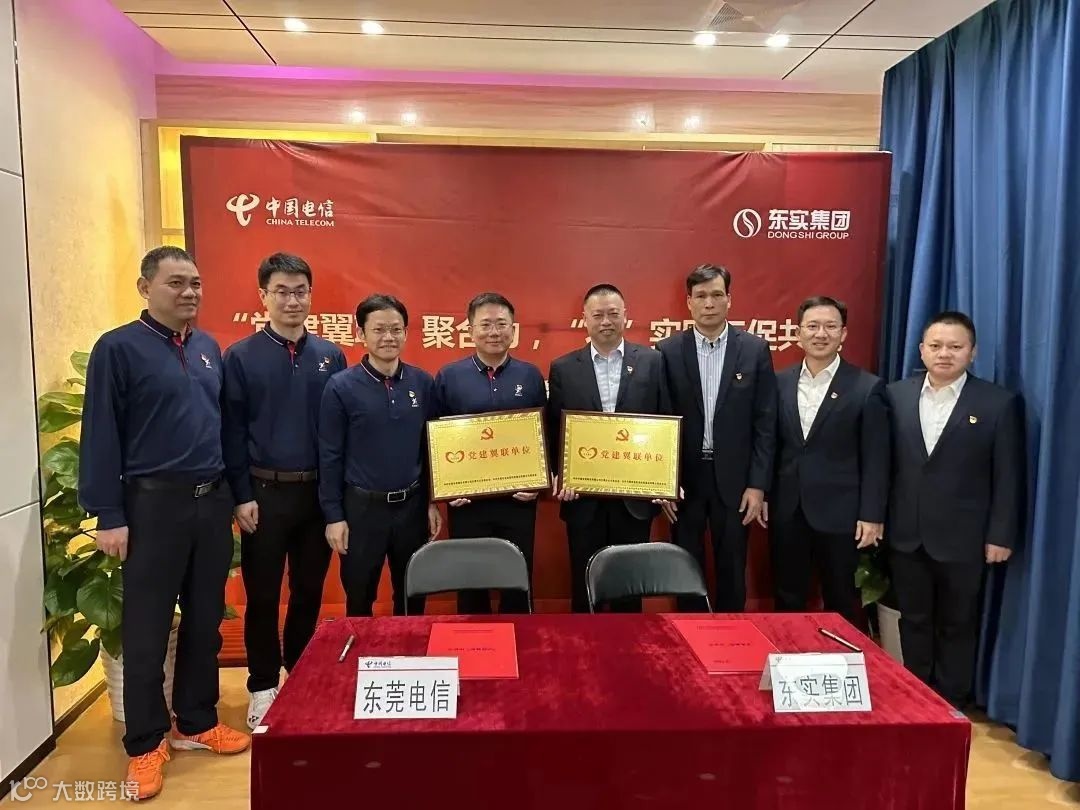 12月7日,东实集团党委与中国电信股份有限公司东莞分公司(下简称“东莞电信”)党委举行“‘党建翼联’聚合力,‘羽’实同行促共赢”党建共建签约仪式。东莞电信党委书记、总经理胡平,党委委员、副总经理吴鹰,党委委员、副总经理沈海,东实集团党委书记、董事长刘波,党委副书记梁翼区,党委委员、副总裁陈仲伟,总工程师、莞建公司党支部书记阳凤萍以及双方相关部室和下属公司负责同志、党员代表等参加活动。