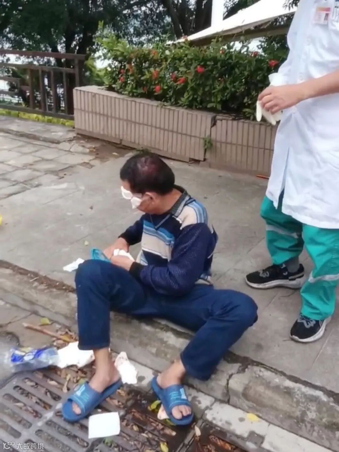 11月16日早上7时,东实城服公司绿化班组环卫工人梁志坚、肖八寿在石龙镇西湖堤坝公园进行绿化修剪工作时,突然遇见一位老人不慎摔倒。现场情况下,老人头部血流不止,已经进入昏迷状态。梁志坚、肖八寿立即上前将老人扶起,并拿出随身携带的毛巾为老人进行包扎止血以防老人失血过多,同时拨打120电话救助。