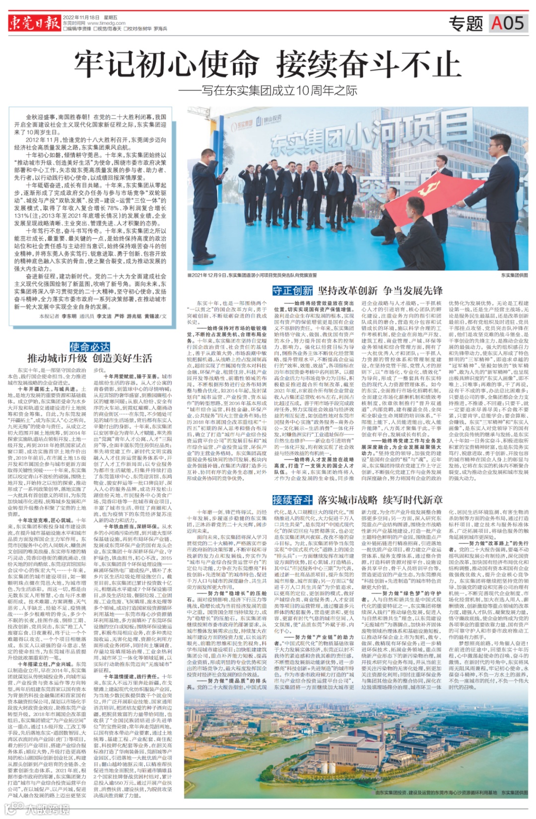 11月18日,东莞日报重磅刊发了东实十周年综述文章——《牢记初心使命 接续奋斗不止》。