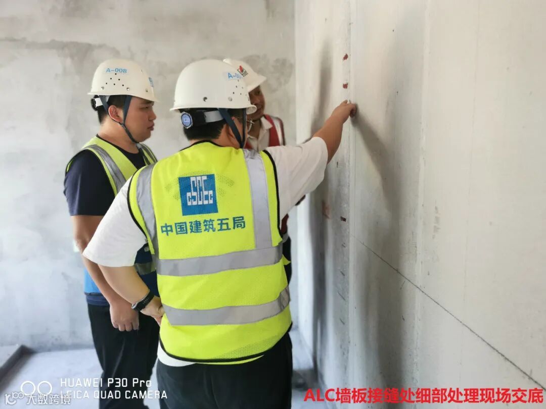 东实旗盛花园通过ALC墙板施工过程中的拼缝检查,接缝处的抹灰细部处理,保证墙板施工的稳定可靠性,同时强调标准化细部处理能够有效保证施工质量,保证墙体装饰装修效果,避免产生墙面开裂隐患。