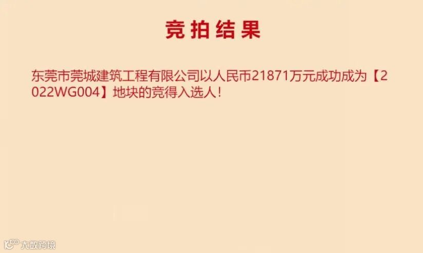 今天上午10点,位于东莞市南城街道簪花路与东莞大道交汇处地块(2022WG004)最终竞拍结果出炉,东实集团全资子公司东莞市莞城建筑工程有限公司以21871万元成功竞得地块,在未来的18个月里,东实集团将投资约8.16亿元(含地价),全力打造市民服务中心三期,为东莞市主城区“地标性”休闲娱乐商业体再增一员!