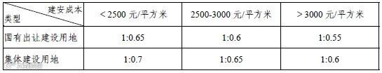 以权籍调查确认的土地面积为基数,结合置换物业建安成本,按一定比例核定置换物业的建筑面积,详见下表: