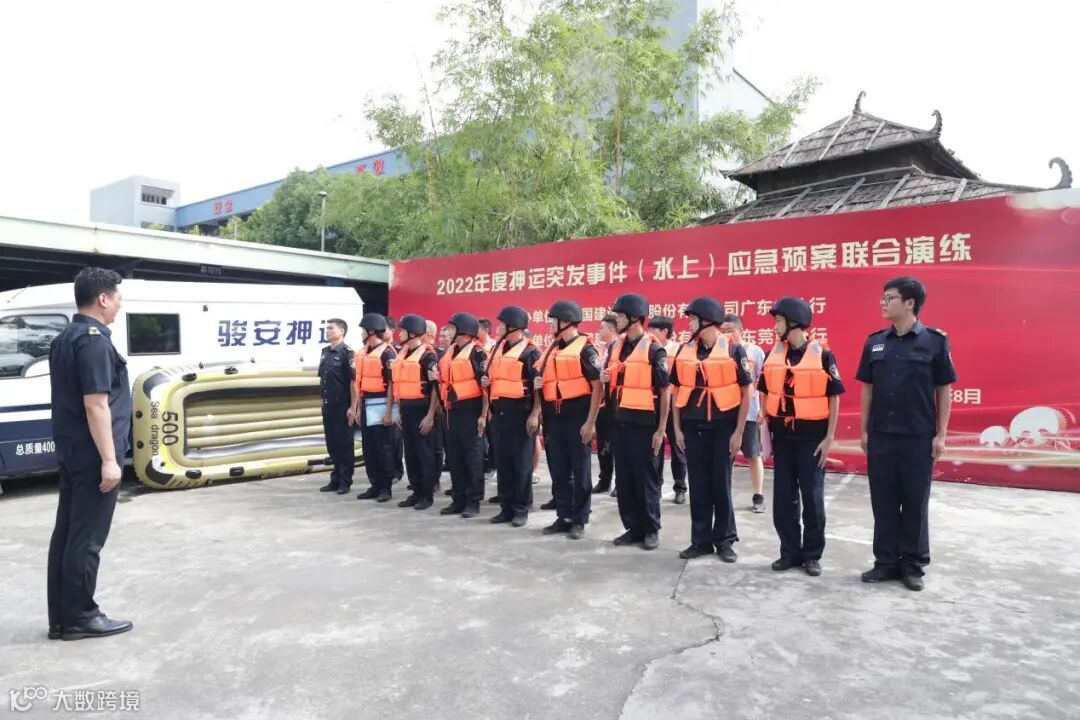 8月27日上午,东实集团下属金融押运公司——东莞市骏安押运有限公司(下称“骏安公司”)与中国建设银行股份有限公司广东省分行、东莞市分行在万江基地举行了2022年度押运突发事件(水上)应急预案联合演练活动。骏安公司总经理张燕明携全体班子成员,中国建设银行东莞分行保卫部副主任邓建新、渠道与运营管理部副总经理李志辉等领导,以及双方小组成员代表,共50余人参加活动。