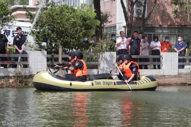 本次演练有押运车2辆、97-式防爆枪*支、教练弹*发、装备10套、橡皮艇3艘、救生衣10件、空钱箱3个、模拟营业网点、模拟金库等,为演练做了充足的准备。随着教官一声令下,演练正式拉开帷幕。全体参演人员士气高昂、精神饱满,把演练当实战,火速集结、果断出击,面对突发洪灾,沉着冷静、应对有素。整个演练贴近一个“实”字,突出一个“战”字,以练促战,切实提高了守押队员的防护应变和团队协作能力。