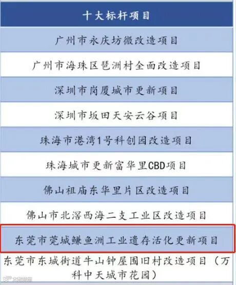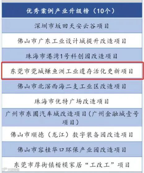 2021年,广东省“三旧”改造优秀案例和先进人物评选活动中,鳒鱼洲工业遗存活化更新项目荣登榜单,获得“产业升级旧改标杆案例”、“十大旧改标杆项目”。