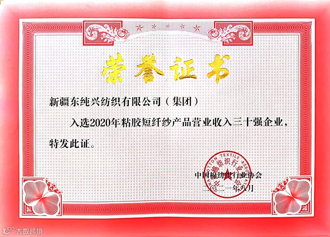 “2020年全国粘胶短纤纱产品营业收入三十强企业”