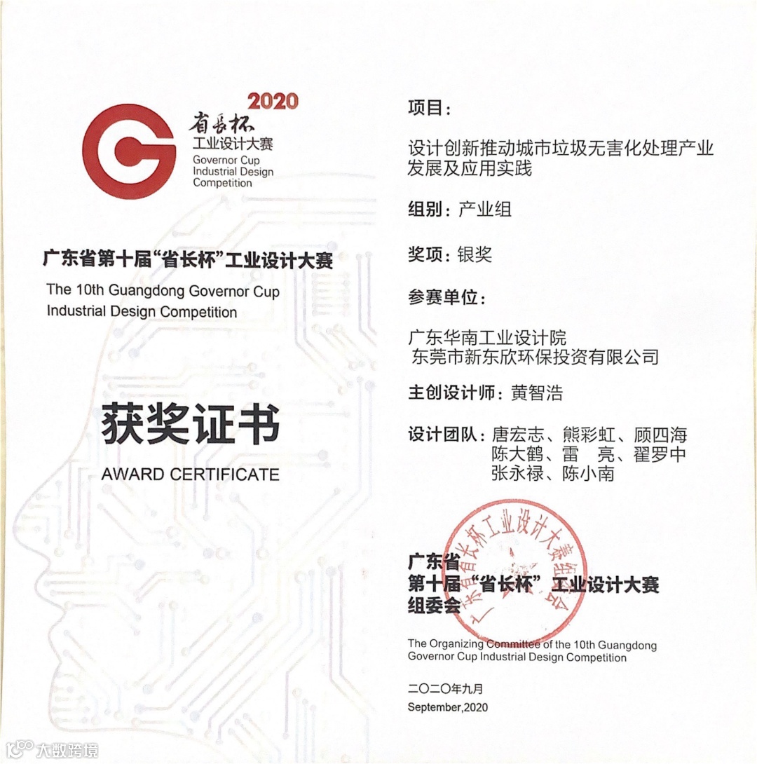 2020年,东莞市新东欣环保投资有限公司工程设计作品“设计创新推动城市垃圾无害化处理产业发展及应用实践”,斩获“省长杯”工业设计大赛产业设计组银奖,是本次获奖单位中唯一一家东莞国企。