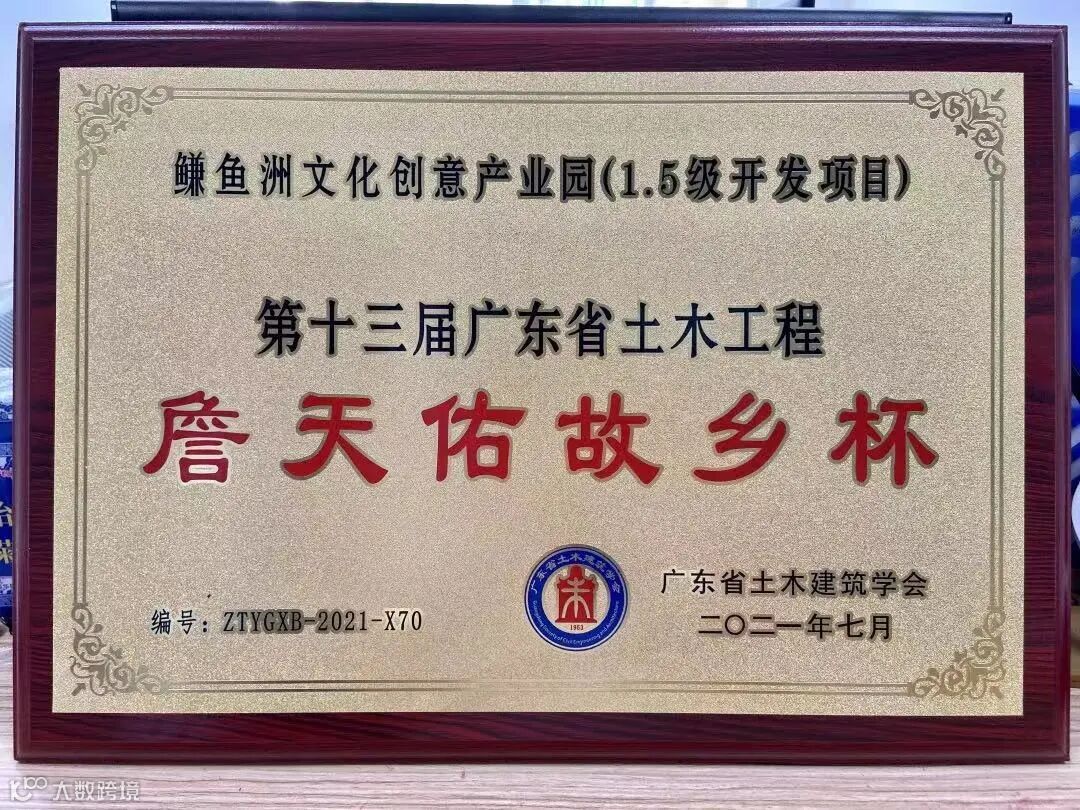 2021年,鳒鱼洲文化创意产业园(1.5级开发项目),荣获“第十三届广东省土木工程詹天佑故乡杯奖”!