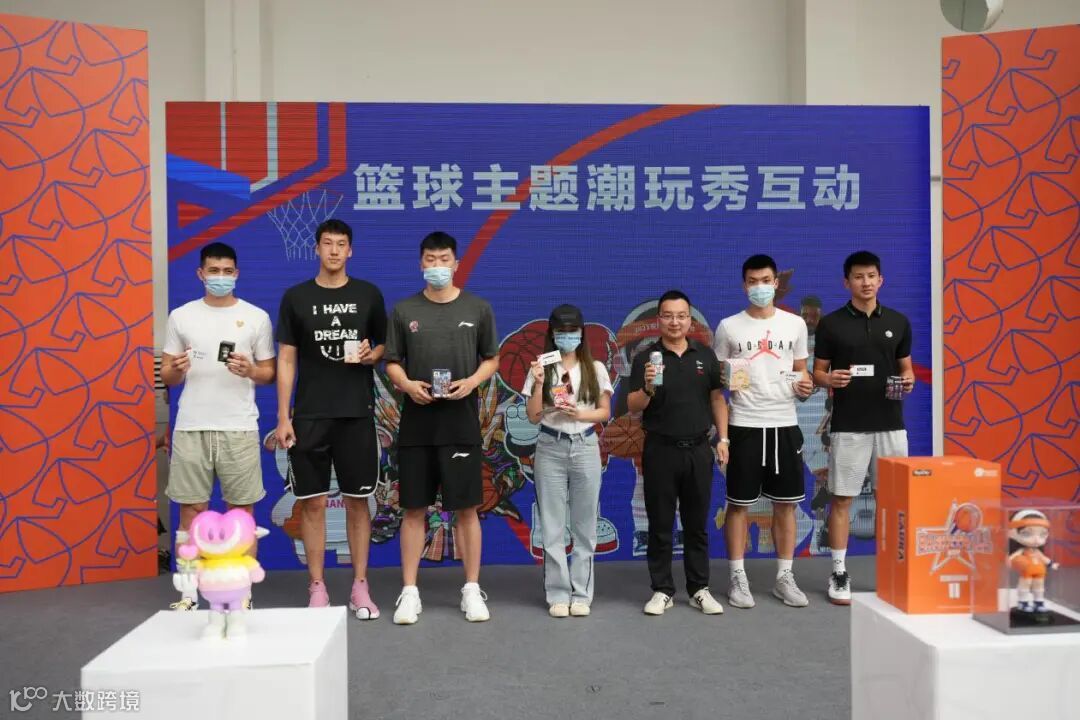 在全场注目下,一块块红布缓缓揭开,七大知名潮玩IP悉数亮相,以全新的篮球主题设计把全场氛围推向高潮。