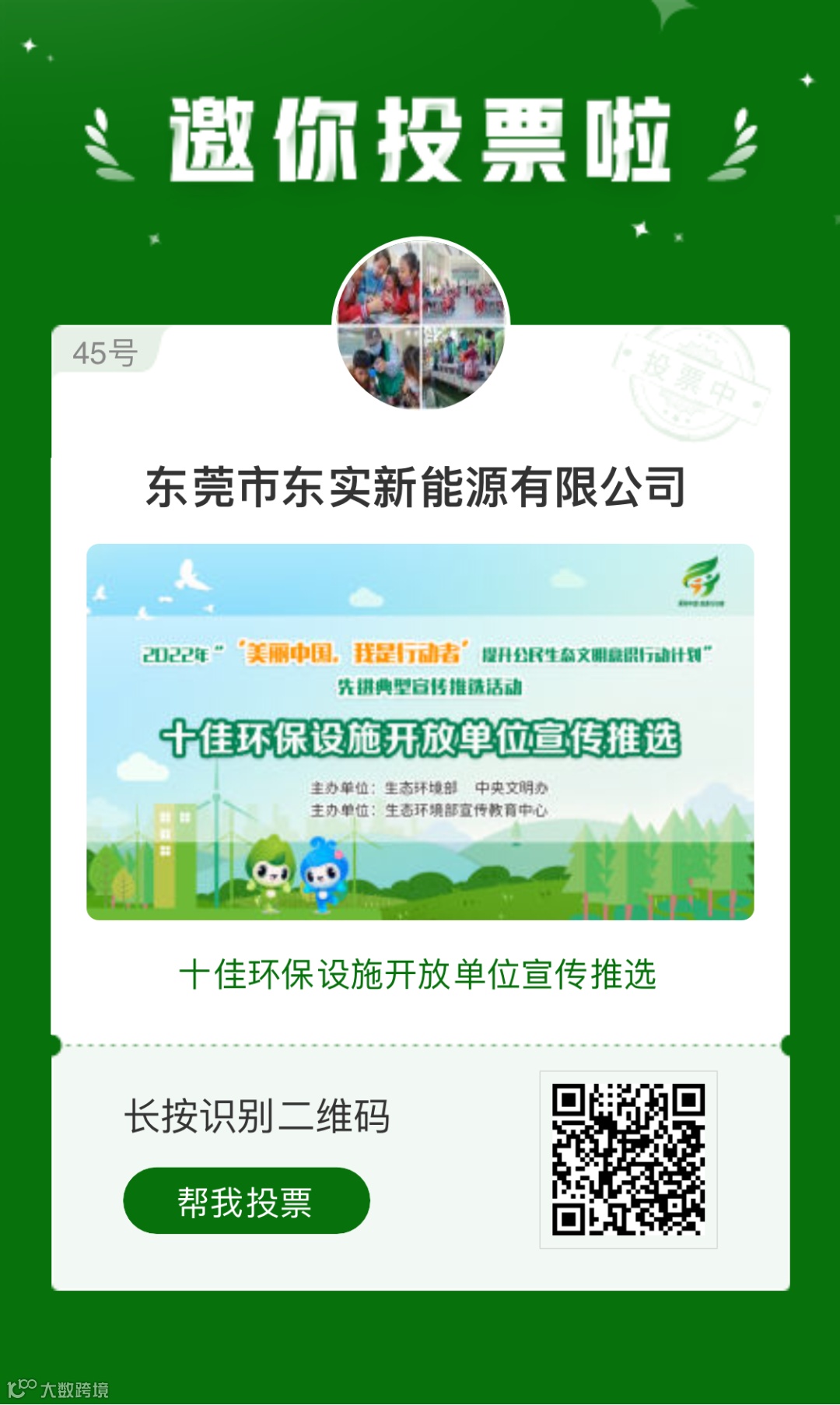 东实新能源公司致力成为东莞城市的环保名片、粤港澳大湾区循环经济的展示窗口,现东实新能源公司已经迈出了关键性的一步!为让更多人看见“湾区都市、品质东莞”,现诚邀您投上宝贵的一票!