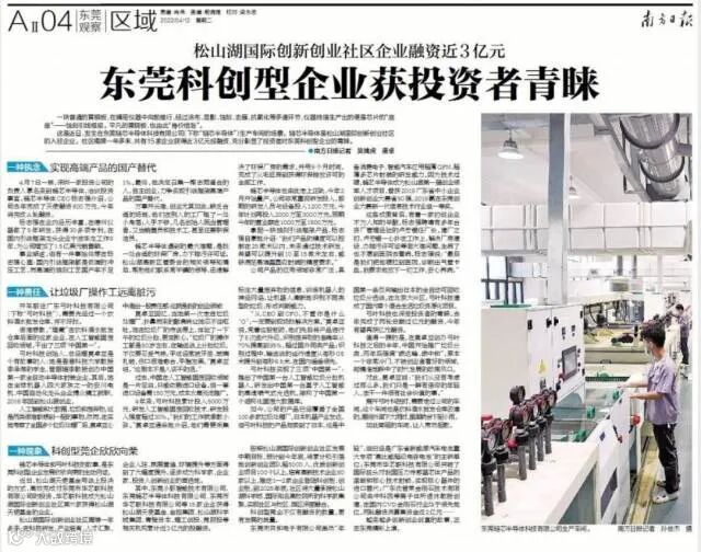 社区揭牌一年多来,共有15家企业获得近3亿元投融资,充分彰显了投资者对东莞科创型企业的青睐。近日,南方日报集焦社区融资企业,深入企业生产一线,进行了专题报道,原文如下: