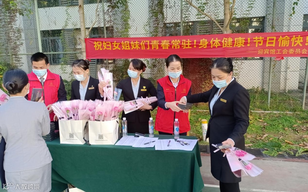 3月8日上午,迎宾馆公司开展庆祝“三八”妇女节慰问活动。活动现场摆满了粉红色的康乃馨和包装精美的口红套盒。前来现场的女员工们每人都收到了节日礼物和美好祝福。