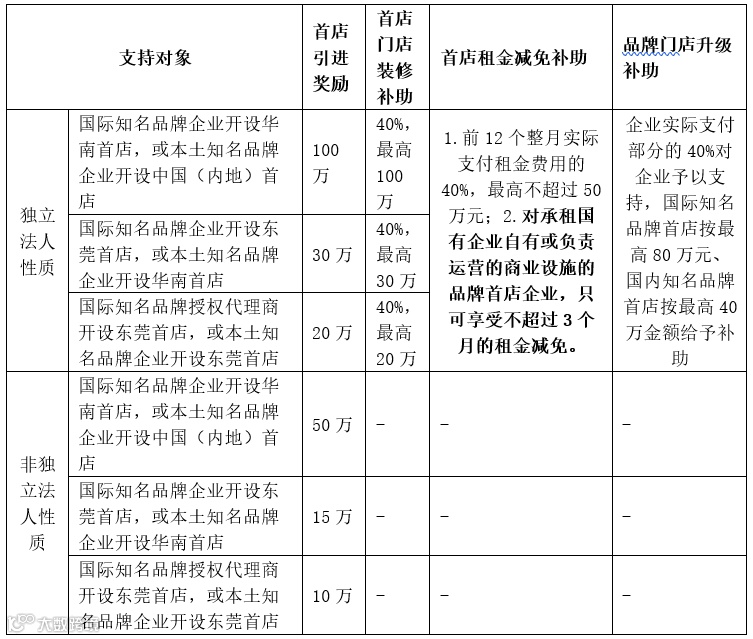 针对招引首店的商业设施运营单位,给予招引企业奖励及装修补助,具体如下: