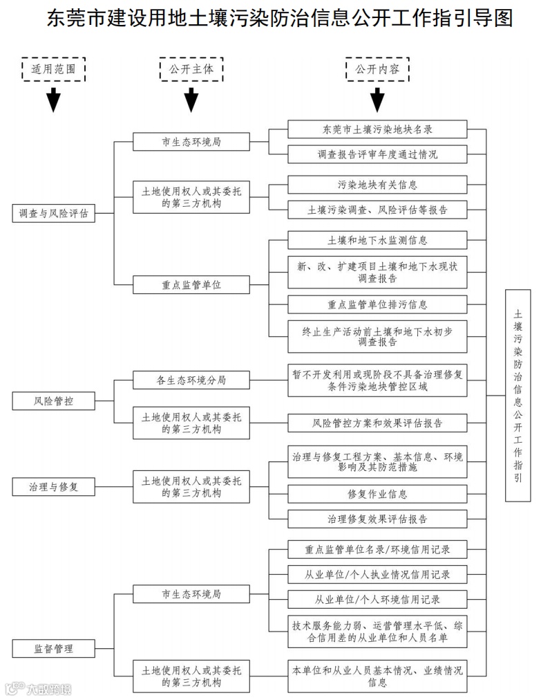 11月18日,东莞市生态环境局印发《东莞市建设用地土壤污染防治信息公开工作指引》的通知,《指引》用于在东莞市行政区域范围内开展的建设用地土壤污染状况调查与风险评估、风险管控、治理与修复以及监督管理等土壤污染防治信息公开工作。