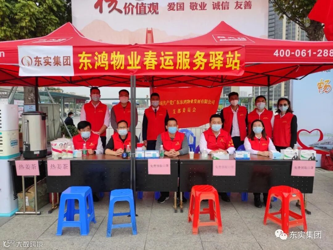 现场设立“东鸿物业服务驿站”,每日安排党员、积极分子在服务驿站值岗,协助维护现场秩序,为旅客提供服务指引。