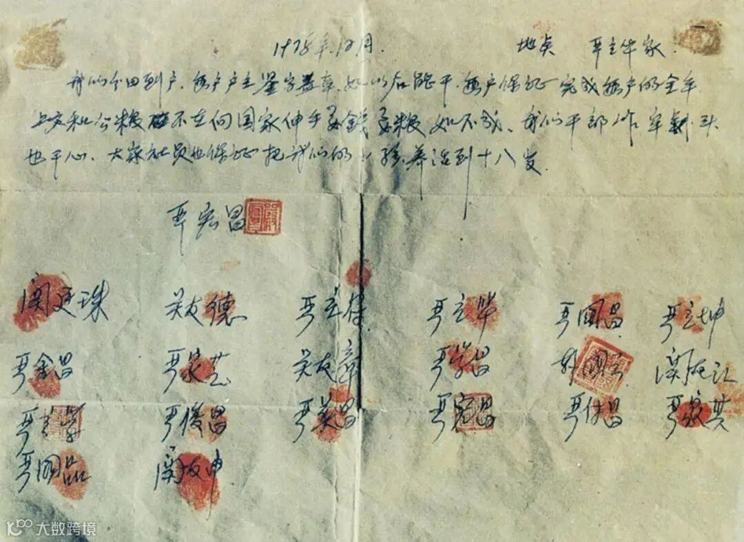 从“借地”中得到启发,安徽一些地方的基层干部和农民冲破旧体制的限制,开始包干到组、包产到户。凤阳县梨园公社小岗村18户农民,冒着风险,在包干合同书上按下了手印。小岗村创造的包干到户,就是“保证国家的,留足集体的,剩下都是自己的”。这个办法简便易行,成效显著,受到农民欢迎。四川、甘肃、云南、广东等省份的一些地方也放宽政策,采取了类似做法。这些大胆尝试,揭开了农村经济改革的序幕。