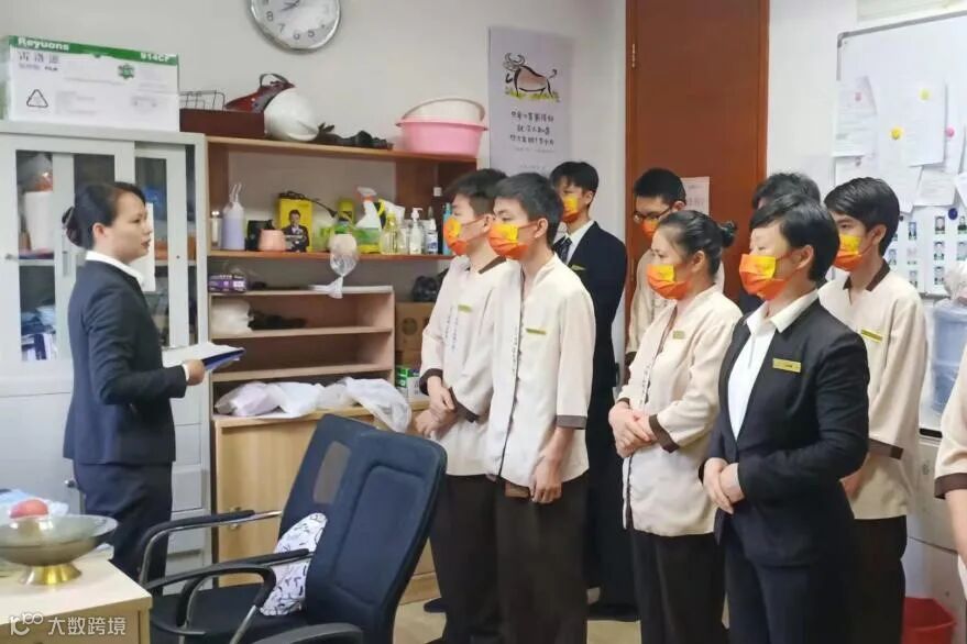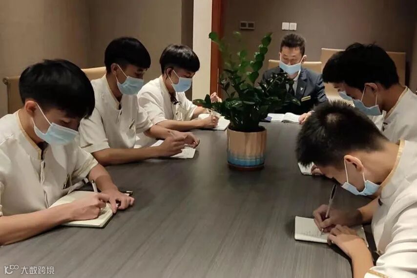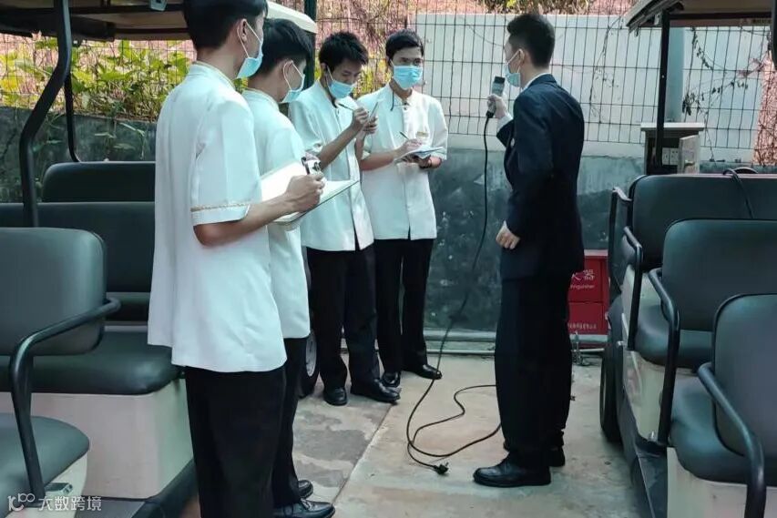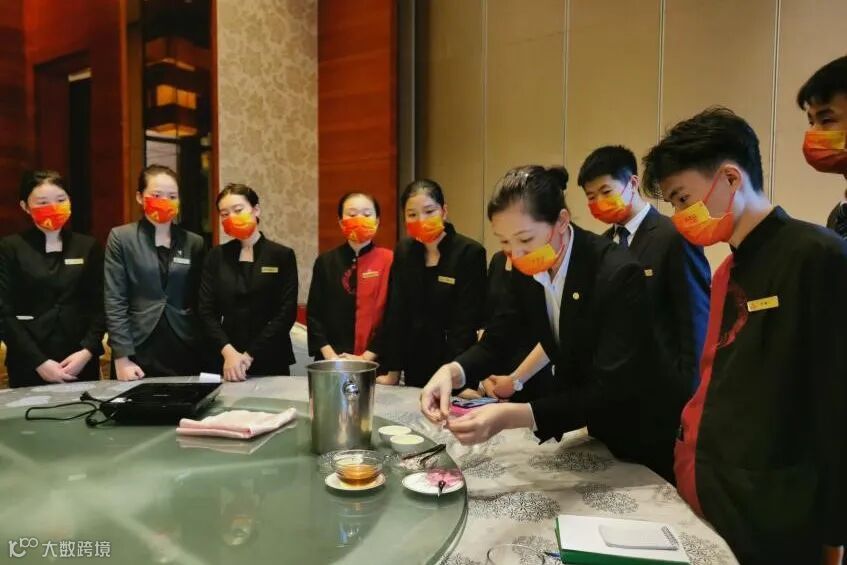▲迎宾馆餐饮-服务部、前台、礼宾部、管家楼层部、商务中心等各个部门开展培训,检查服务流程,确保提升国庆期间员工的服务质量