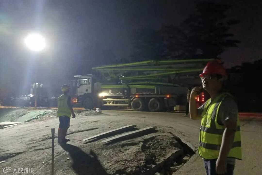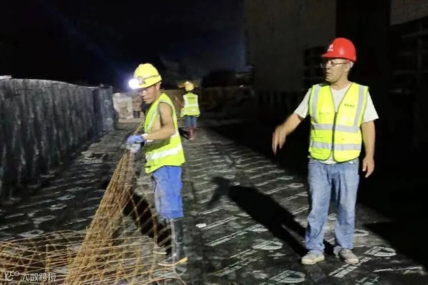 ▲莞建员工在迎宾馆改扩建项目进行夜间施工作业,以保证工期如期完成