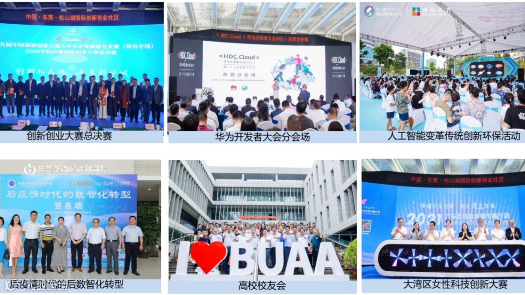 借助科技交流平台,社区先后举办粤港澳大湾区院士专家论坛等高水平国际会议、举办院士峰会、创新创业大赛、华为开发者大会(东莞分会场)等多元化系列活动30多场,不定期举办学术交流会议、高校校友会等特色活动,营造浓厚创新创业氛围,助推东莞经济踏上高质量发展之路。