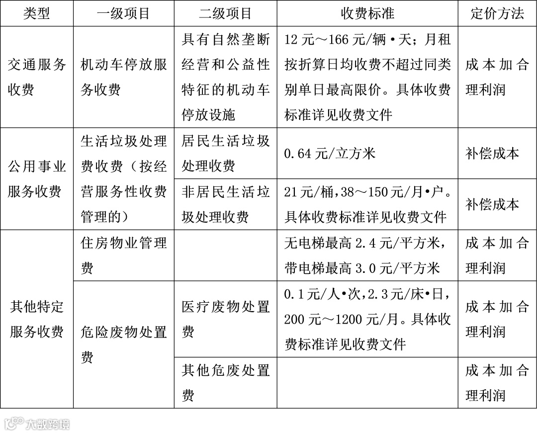 文件中相关的定价的经营服务性收费目录清单如下: