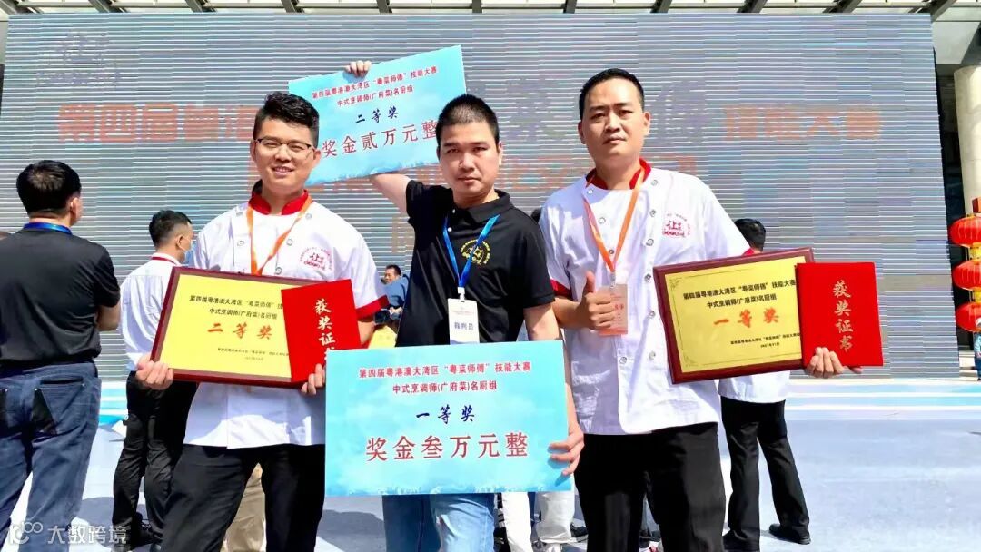 经过激烈角逐,东莞代表团六名选手全部获奖,总奖金达7.8万元,奖牌总数和奖金总数均位列全省第二,创造出东莞市参加粤港澳大湾区“粤菜师傅”技能大赛的最好成绩!其中东莞迎宾馆厨师谭震洪更是勇夺中式烹调师名厨组一等奖,同时本次活动首次发布全省粤菜“三名”名单,谭震洪被认定为广东省四星级“粤菜师傅”名厨。