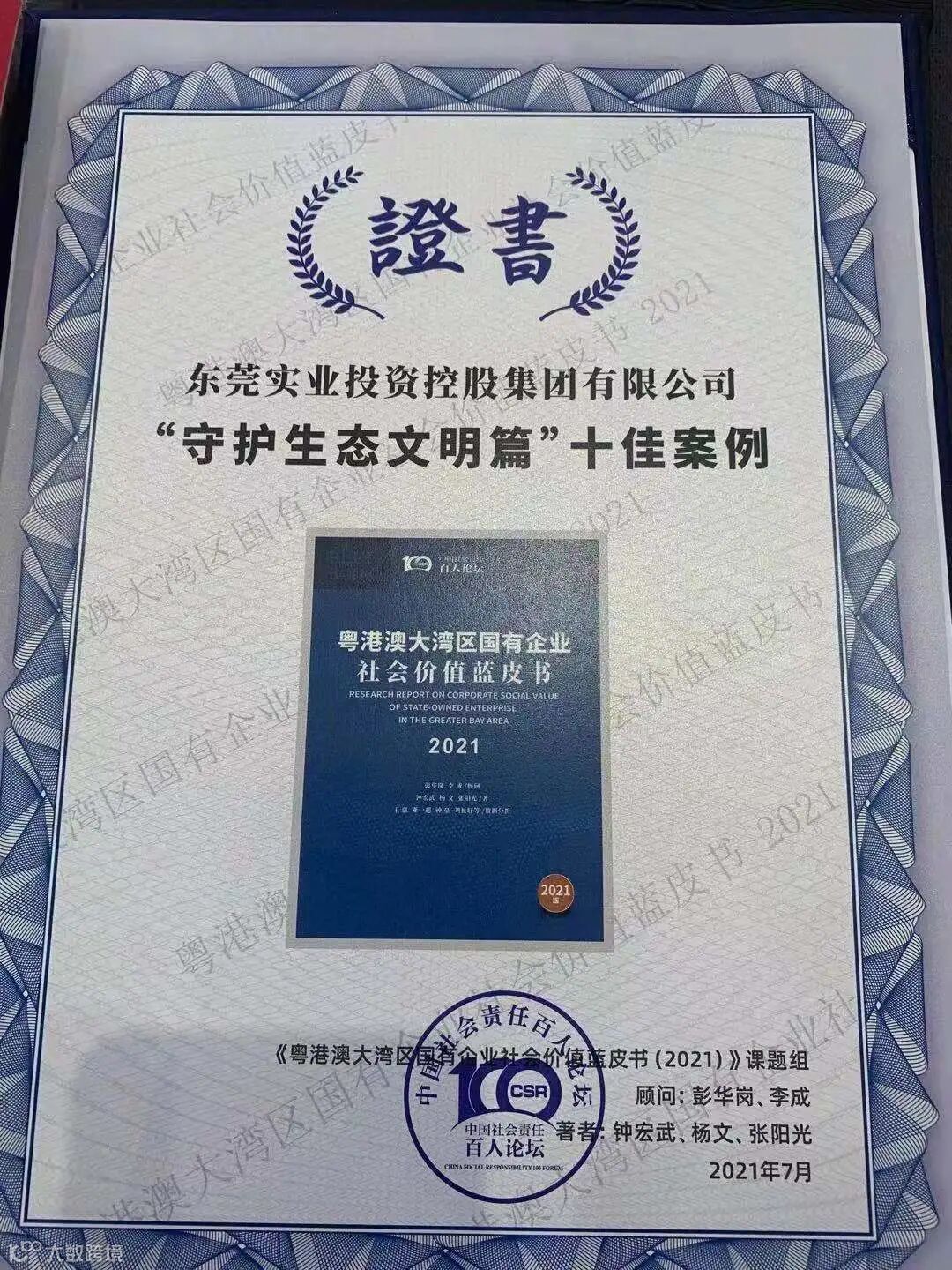 论坛举行《粤港澳大湾区国有企业社会价值蓝皮书(2021)》优秀案例表彰。东实集团“护航绿色发展,创享东莞美好生活”案例在湾区国企践行社会责任、传递社会价值具有示范引领作用,在全省95家企业报送的212个案例中脱颖而出,入选“守护生态文明”议题十佳案例。