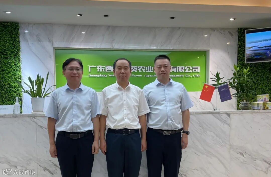△三师图市党委副书记、师长谢映周(中),东实集团党委书记、董事长刘波(右),东实集团党委副书记、总裁彭光顺(左)参观粤疆集团东莞分公司