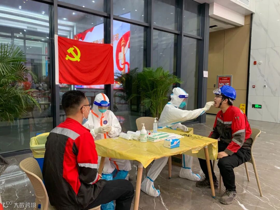 6月18日晚,在接到属地开展全员紧急核酸筛查通知后,新能源公司立即行动,领导干部靠前指挥,党员模范带头,员工义无反顾,迅速完成海心沙基地大规模核酸筛查点布置工作。