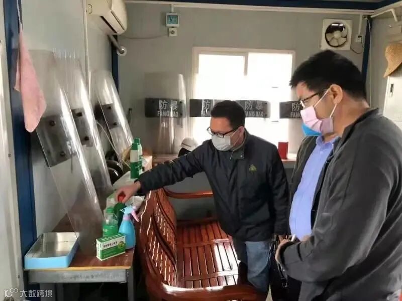梁广垣同志(左一)在检查工地防疫措施落实情况