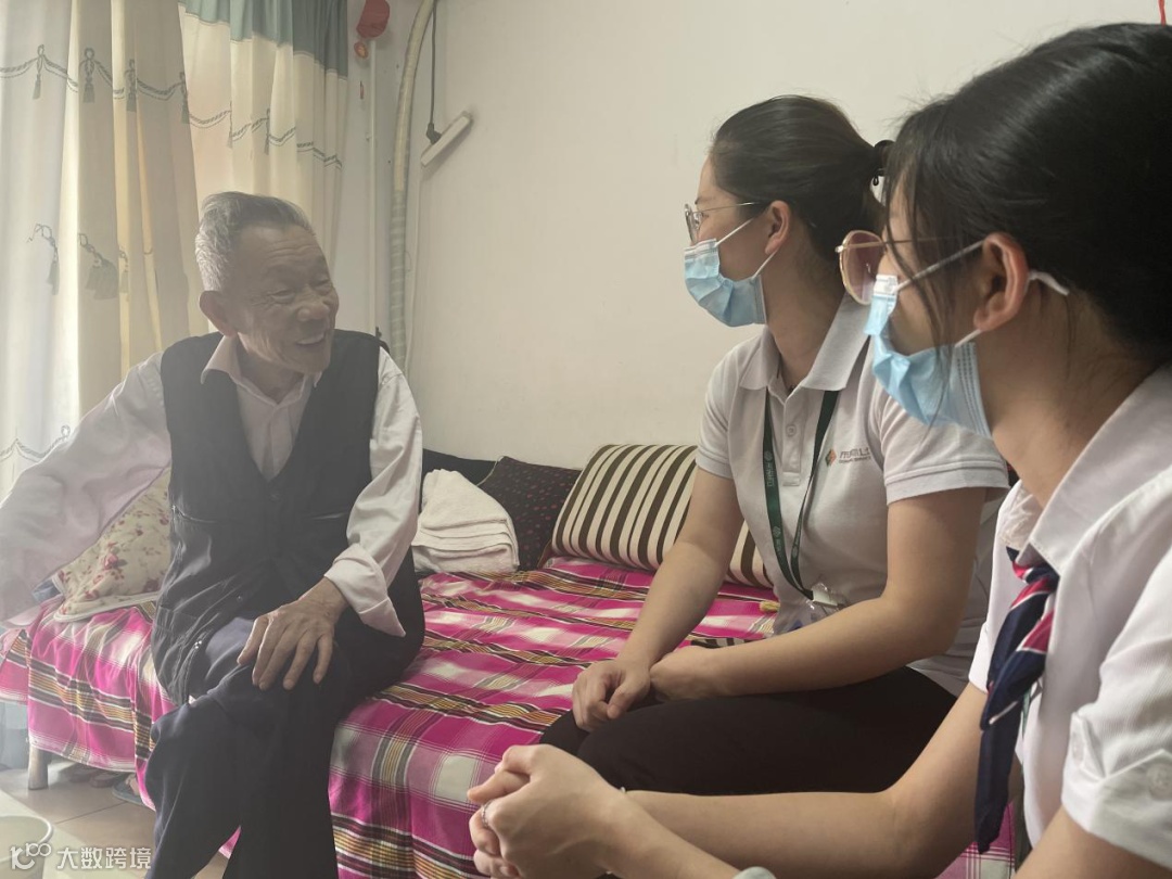 东莞实业投资控股集团党办主任陈见峰,广东东鸿物业发展有限公司党支部书记、总经理刘贤庆慰问雅园新村独居盲人刘坤富