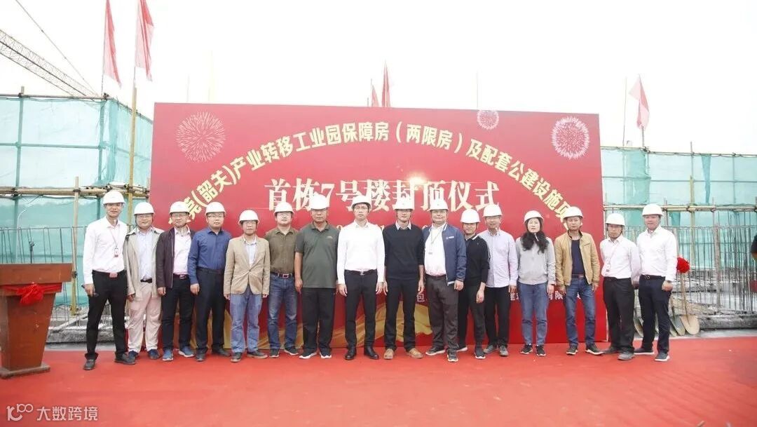 东莞(韶关)产业转移工业园保障房(两限房)及配套公建设施工程项目位于韶关市城区西部,属莞韶产业园的配套建设项目,勘察设计施工合同金额约39124.14万元,总建筑面积约163378平方米。此次封顶的7号楼为两限房项目首栋,标志着两限房项目建设取得了重要的阶段性胜利,为后续工程的顺利开展奠定了坚实基础。