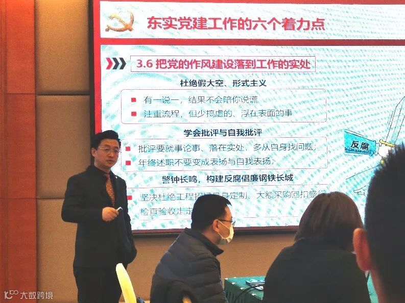 迎宾馆总经理付亮、党支部书记黄奕鸿结合酒店经营与管理,向与会人员传达和解读了《将国企党建工作深度融入现代企业治理》、《学习党的十九届五中全会精神——推动东实集团高质量发展》两份党课课件中的主要内容和精神内涵。