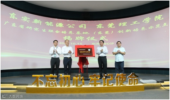 10月15日,东莞市政协副主席、东莞理工学院研究生处处长程发良代表东莞理工学院,授予东莞市东实新能源有限公司(下简称“东实新能源公司”)“广东省研究生联合培养基地(东莞)创新培养示范点”牌匾。东实集团党委副书记、总裁彭光顺,东实新能源公司党支部书记、总经理熊彩虹和东莞理工学院生态环境与建筑工程学院副院长邱永福等参加了本次仪式。
