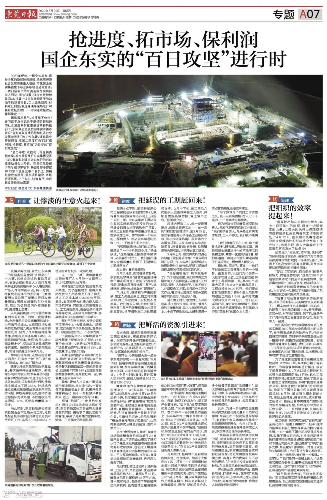 今年2月底,面对疫情的影响,东实就及早谋划“经营效益百日冲刺”、“重点项目百日攻坚”双百攻坚行动,要求各项目围绕复工复产、追赶进度、提升效益等拿出“硬措施”。