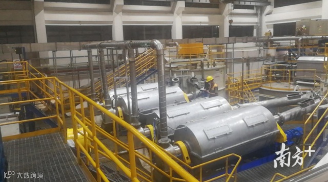 麻涌餐厨垃圾处理厂,技术人员正在预处理车间进行设备巡回检查
