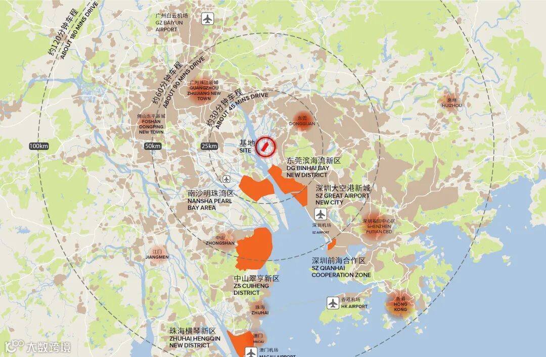 基地选址东莞沙田港湾科创产融城,位于广深港澳科技创新走廊的中心节点,毗邻穗深城际轨道(东莞港站)和广深沿江高速(沙田站),区位优越,交通便利。