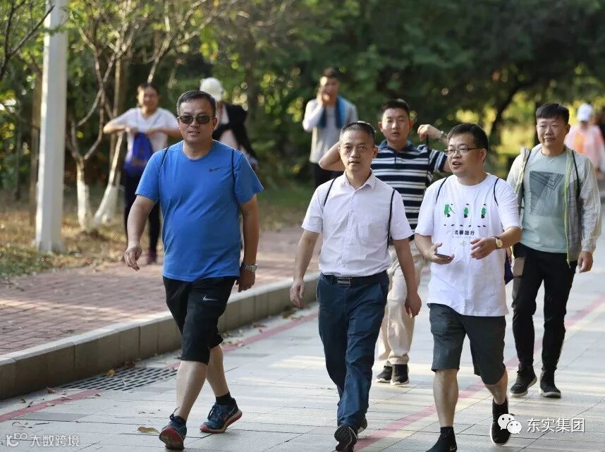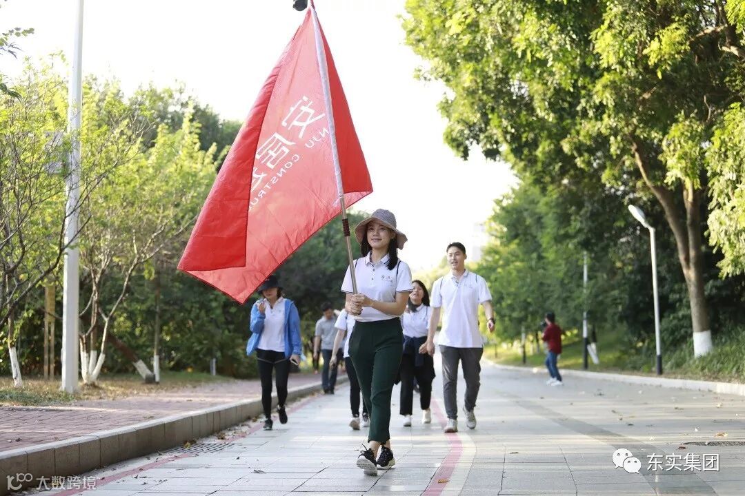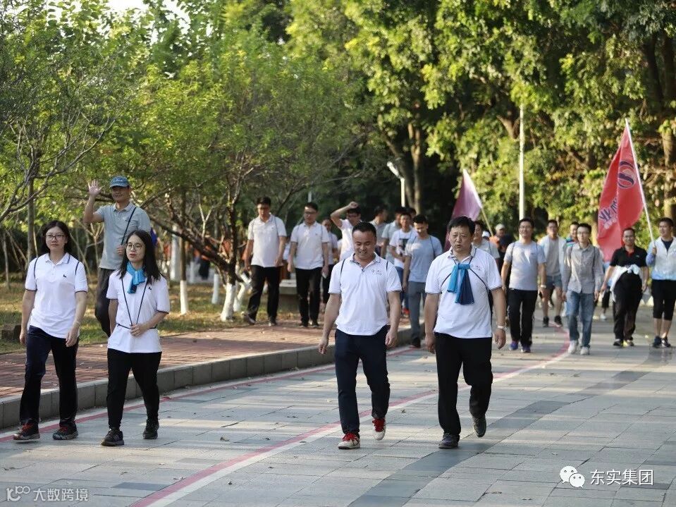 仪式结束后,活动进入了健走环节。近400名东实人精神抖擞,一起甩开臂膀、步伐矫健地向水濂山水库有序出发,各下属公司员工代表手执司旗,形成一道亮丽的风景线!健走途中,大家你追我赶、有说有笑,一边欣赏着“树树皆秋色,山山唯落晖”的湖岸美景,一边享受着“我运动、我快乐”的激情活力,为本次七周年纪念活动画下圆满句号。