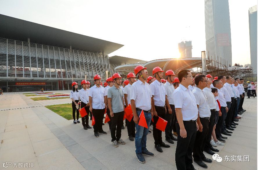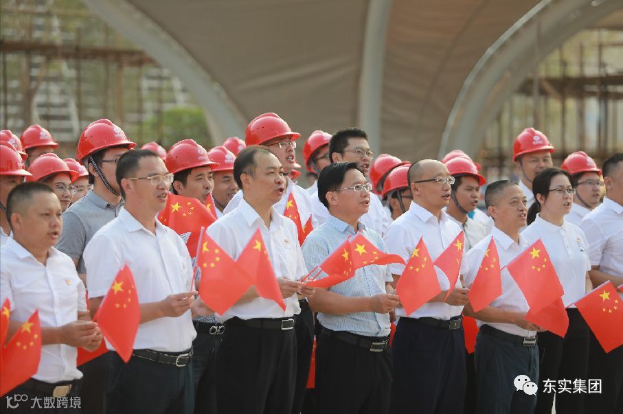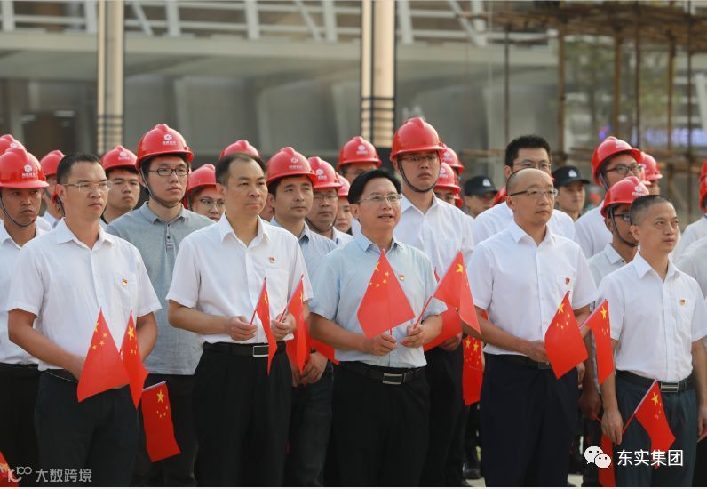 集团总裁彭光顺,党委副书记、副总裁罗耀东,副总裁冯卫民,总裁助理尹敬华,率领集团各部门员工代表、莞建公司员工代表,以及市民服务中心项目部、分包单位工作人员共80余人参加了升旗仪式。东莞市政数局副局长陈钊及相关人员,代表市民服务中心入驻使用单位,一同参加了升旗仪式。