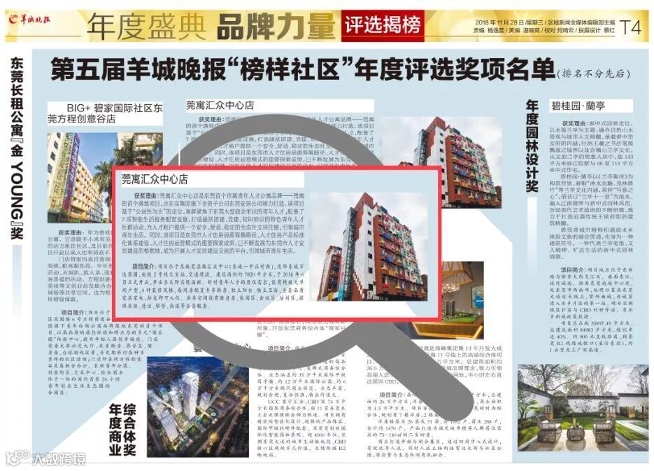 近期,东实集团下属东莞安居建设有限公司(以下简称“安居公司”)再次传来喜讯:由安居公司打造的首个人才公寓项目——莞寓汇众中心店,在羊城晚报第五届“榜样社区”年度评选中获得“东莞长租公寓金YOUNG奖”。