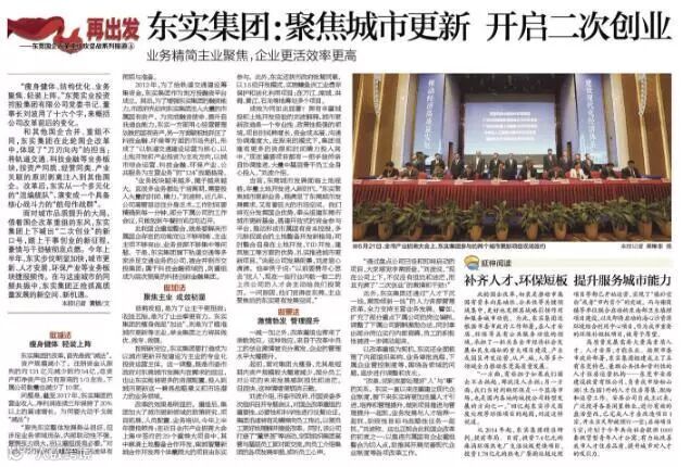当前,我市新一轮国企重组整合已接近尾声。改革重组后的东实集团,“瘦身健体、结构优化、业务聚焦、轻装上阵”,正以昂扬的斗志开启“二次创业”新征程!6月27日,《东莞日报》推出“再出发——东莞国企改革重组攻坚战”系列报道第四篇,聚焦改革重组后的东实集团,全文如下——