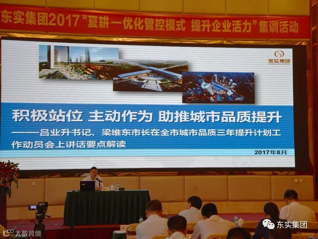 在8月9日—10日举行的2017年度“夏耕”集训活动上,东实集团将全市城市品质三年提升计划作为了重点学习内容。刘波董事长亲自授课,全面传达、深入解读了市委吕业升书记、市政府梁维东市长在全市城市品质三年提升计划工作动员会上的讲话精神,重点阐述了重点模块重点业务的战略意义及工作内涵。集团本部中层以上管理人员,下属公司全体领导班子及核心业务部门负责人近100人参加了培训。