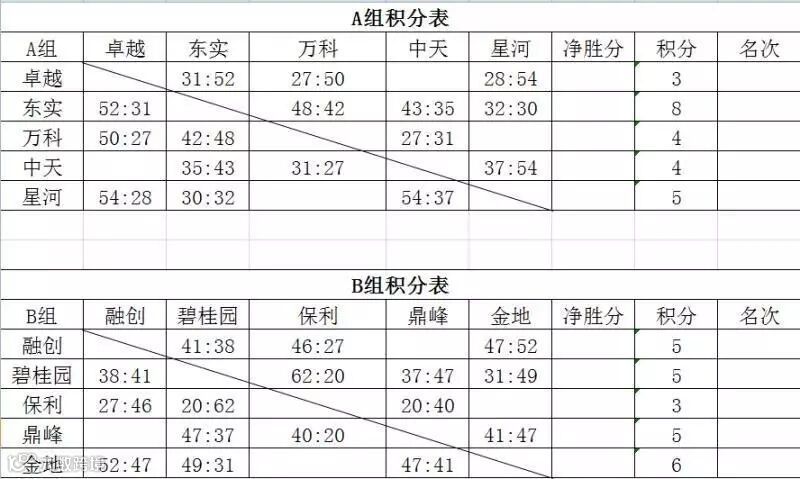 本届比赛中,东实集团与卓越、万科、中天和星河分在了A组,经过小组赛的激烈争夺,东实集团以全胜的战绩顺利进入到半决赛,并将于2017年9月14日,在半决赛中迎战B组第二鼎峰地产代表队。