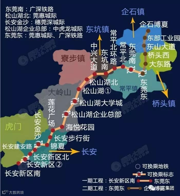 5号线线路起点位于1号线松山湖北站,终点为莞深边界,设5座车站,拟与深圳13号线衔接。