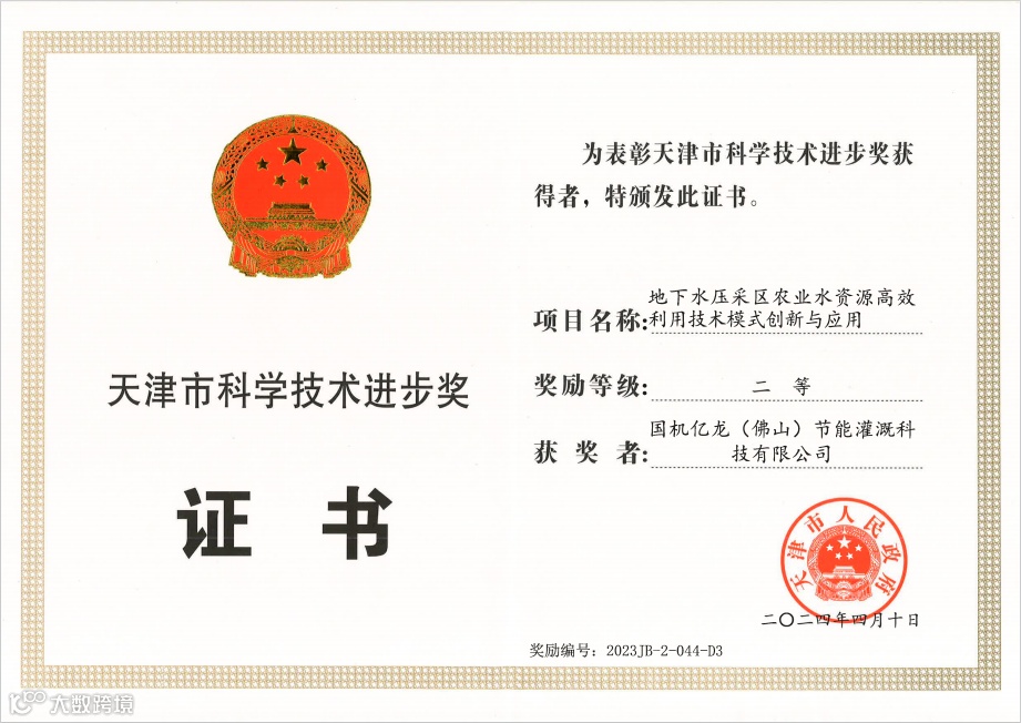 国机亿龙软体水窖荣获天津市科学技术进步奖