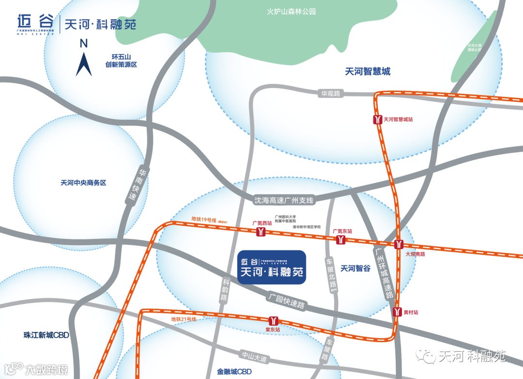 位处广州主城区承接东西的主干道——广园快速路主干道旁,周边三地铁(21号线棠东站/4号线黄村站/19号线广氮西站 (规划中)),地铁5站畅达珠江新城,四条主干道、二城轨环绕,快速汇通深圳、东莞、珠海等重点城市。
